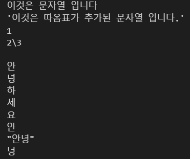 text2 = "\\'이것은 따옴표가 추가된 문자열 입니다.\\'"