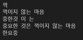 sentence = "중요한 것은 꺽이지 않는 마음"