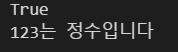 객체 주소값(타입)을 비교할 땐 is 키워드
