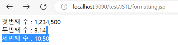 첫번째 수 : <fmt:formatNumber value = "1234500" groupingUsed = "true" /> <br>